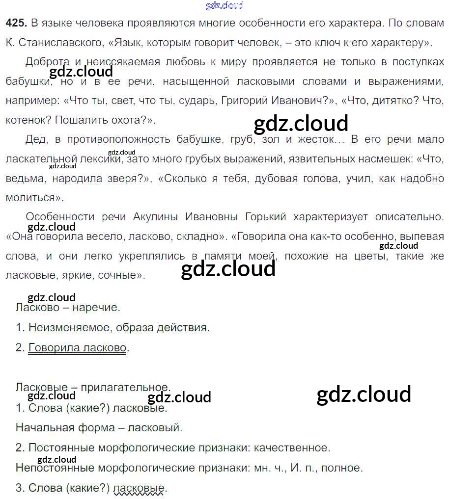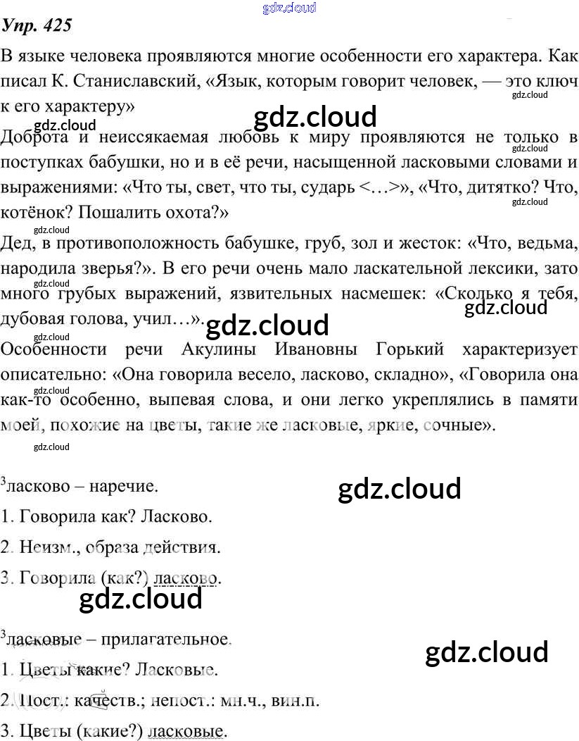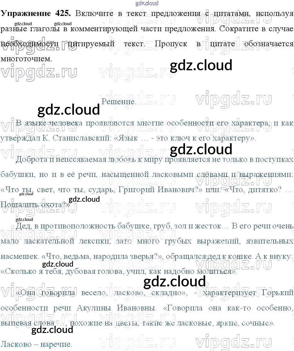 Ответ на задание 425 Учебник Русский язык за 8 (восьмой) класс Тростенцова, Ладыженская, Дейкина, Александрова 2014