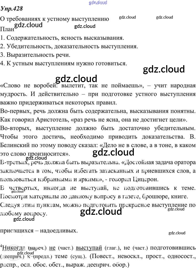 Ответ на задание 428 Учебник Русский язык за 8 (восьмой) класс Тростенцова, Ладыженская, Дейкина, Александрова 2014