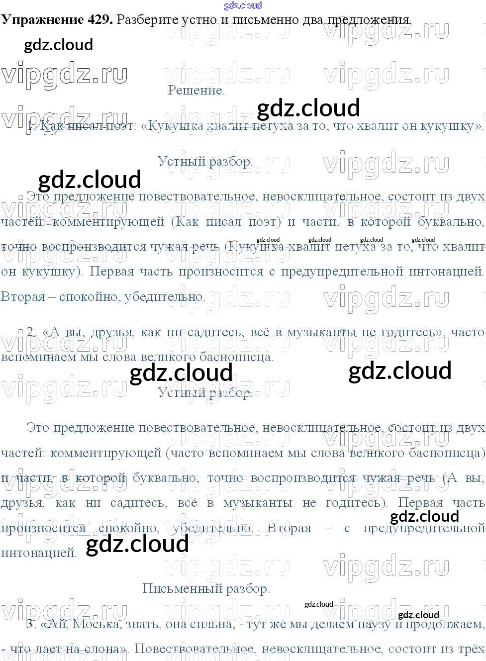 Ответ на задание 429 Учебник Русский язык за 8 (восьмой) класс Тростенцова, Ладыженская, Дейкина, Александрова 2014