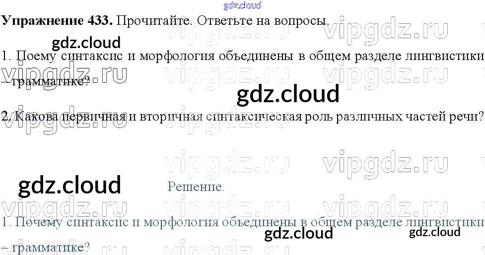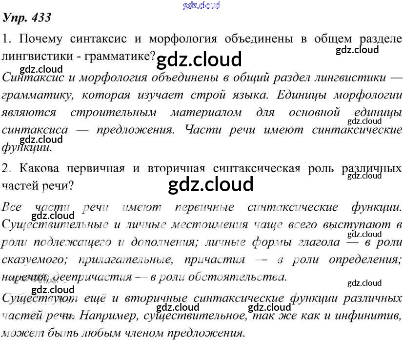 Ответ на задание 433 Учебник Русский язык за 8 (восьмой) класс Тростенцова, Ладыженская, Дейкина, Александрова 2014