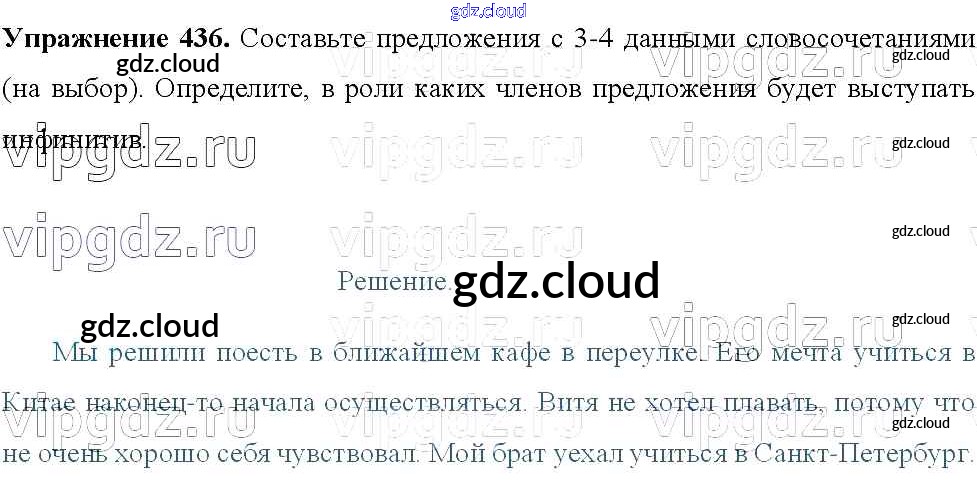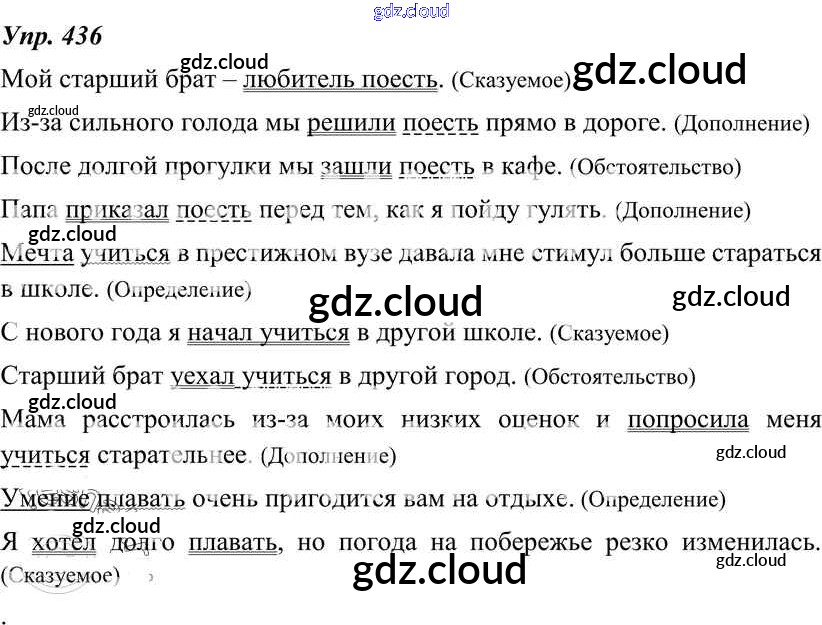 Ответ на задание 436 Учебник Русский язык за 8 (восьмой) класс Тростенцова, Ладыженская, Дейкина, Александрова 2014