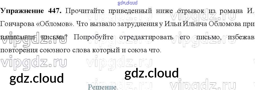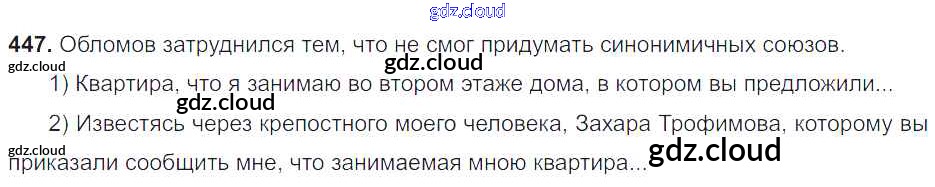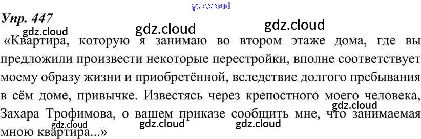 Ответ на задание 447 Учебник Русский язык за 8 (восьмой) класс Тростенцова, Ладыженская, Дейкина, Александрова 2014