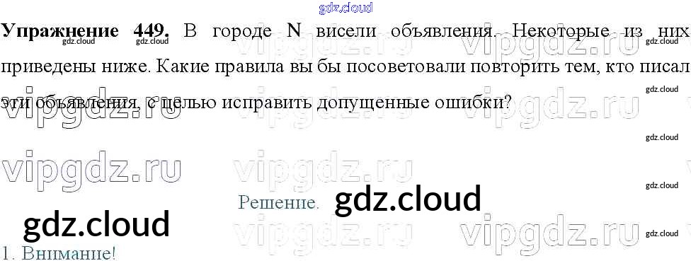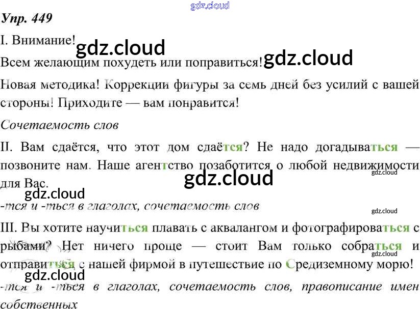 Ответ на задание 449 Учебник Русский язык за 8 (восьмой) класс Тростенцова, Ладыженская, Дейкина, Александрова 2014