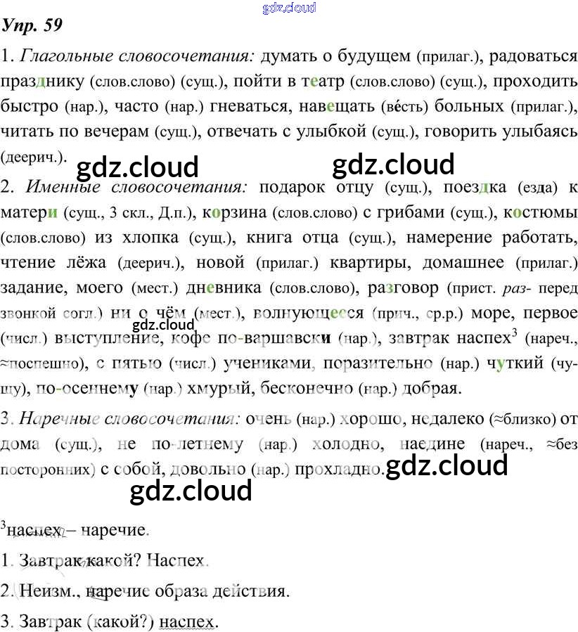 Ответ на задание 59 Учебник Русский язык за 8 (восьмой) класс Тростенцова, Ладыженская, Дейкина, Александрова 2014
