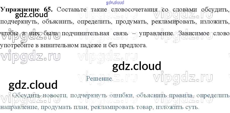 Ответ на задание 65 Учебник Русский язык за 8 (восьмой) класс Тростенцова, Ладыженская, Дейкина, Александрова 2014
