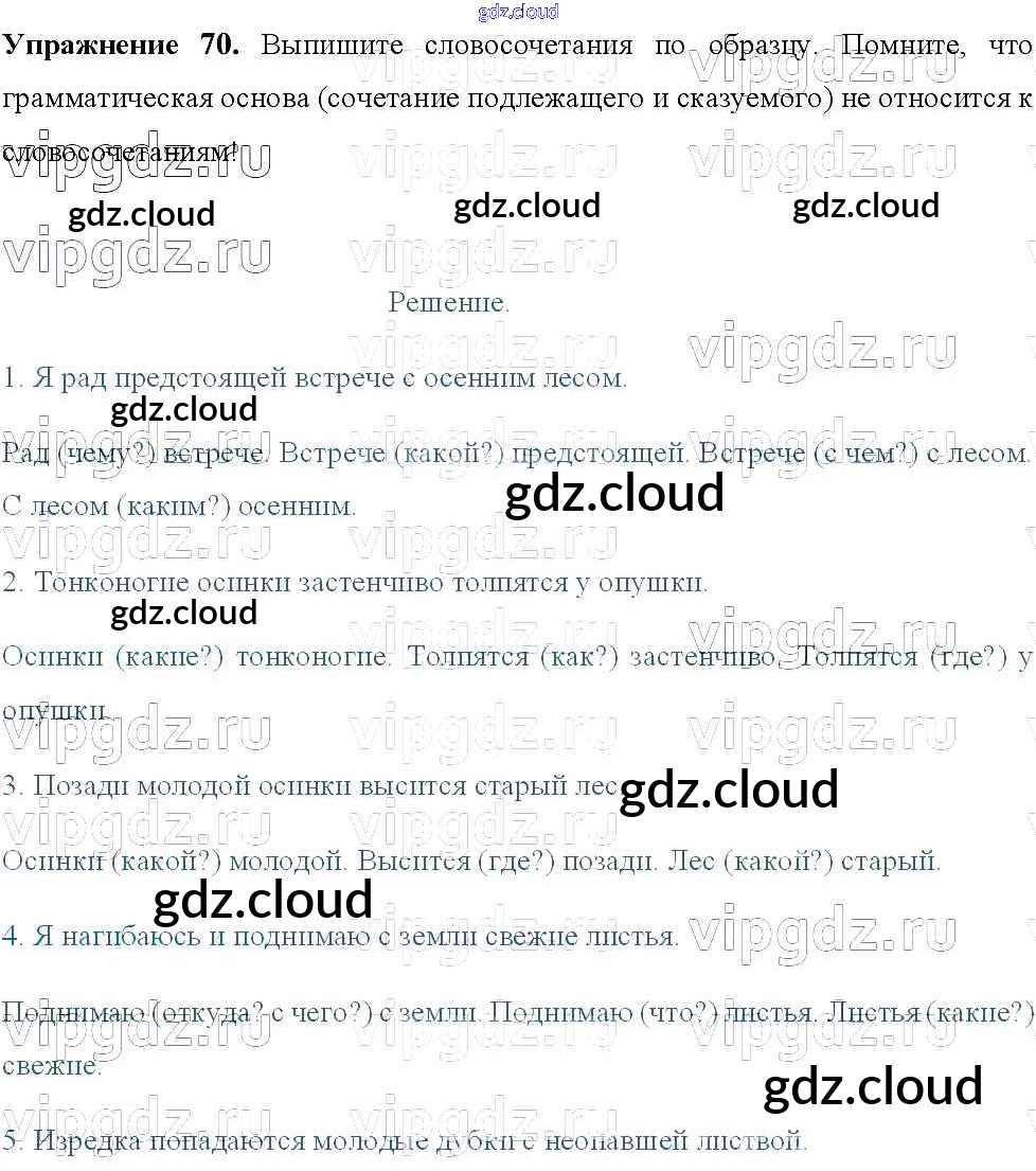 Ответ на задание 70 Учебник Русский язык за 8 (восьмой) класс Тростенцова, Ладыженская, Дейкина, Александрова 2014