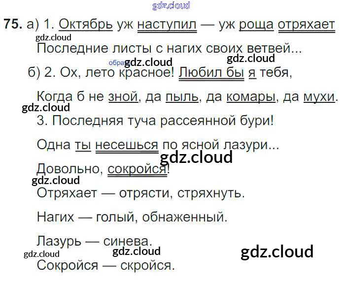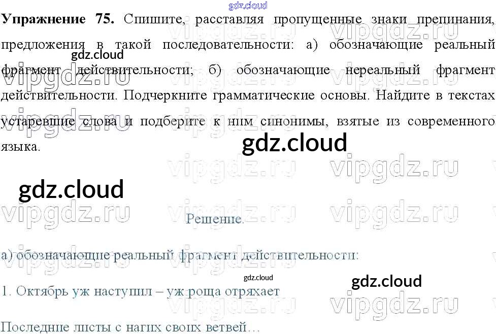 Ответ на задание 75 Учебник Русский язык за 8 (восьмой) класс Тростенцова, Ладыженская, Дейкина, Александрова 2014