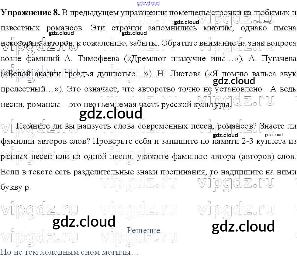 Ответы к упражнениям по Русскому языку 8 класс Учебник Тростенцова Просвещение