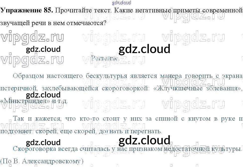 Ответ на задание 85 Учебник Русский язык за 8 (восьмой) класс Тростенцова, Ладыженская, Дейкина, Александрова 2014