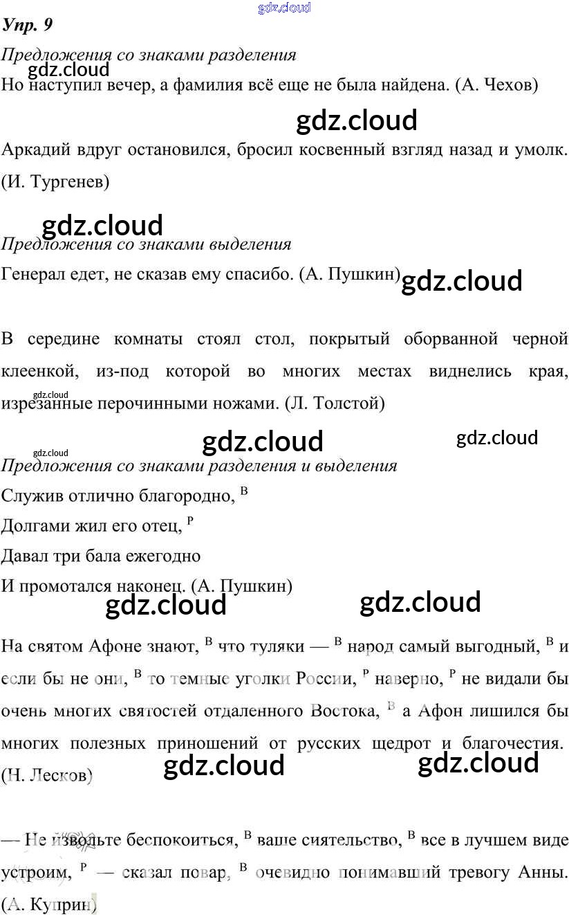 Ответ на задание 9 Учебник Русский язык за 8 (восьмой) класс Тростенцова, Ладыженская, Дейкина, Александрова 2014