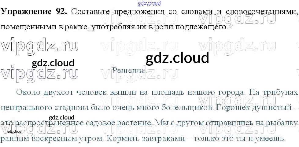 Ответ на задание 92 Учебник Русский язык за 8 (восьмой) класс Тростенцова, Ладыженская, Дейкина, Александрова 2014