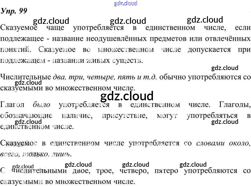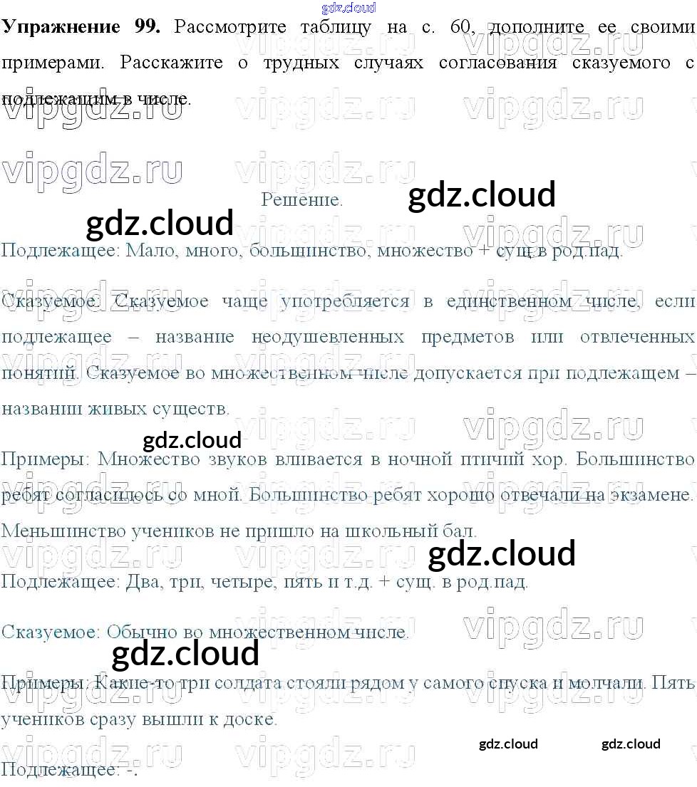 Ответ на задание 99 Учебник Русский язык за 8 (восьмой) класс Тростенцова, Ладыженская, Дейкина, Александрова 2014