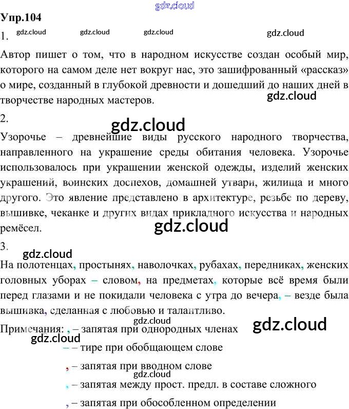 Ответ на задание 104 Учебник Русский язык за 8 (восьмой) класс Александрова, Загоровская, Богданов 2020 ФГОС онлайн и без номера телефона.