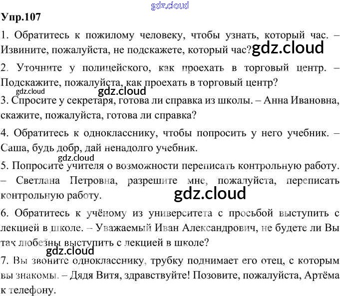 Ответ на задание 107 Учебник Русский язык за 8 (восьмой) класс Александрова, Загоровская, Богданов 2020 ФГОС онлайн и без номера телефона.