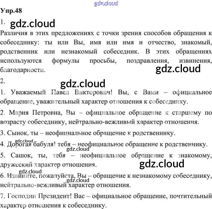 Ответ на задание 48 Учебник Русский язык за 8 (восьмой) класс Александрова, Загоровская, Богданов 2020 ФГОС онлайн и без номера телефона.