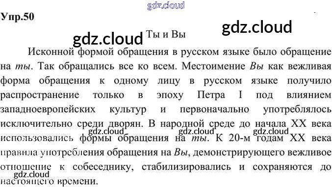 Ответ на задание 50 Учебник Русский язык за 8 (восьмой) класс Александрова, Загоровская, Богданов 2020 ФГОС онлайн и без номера телефона.