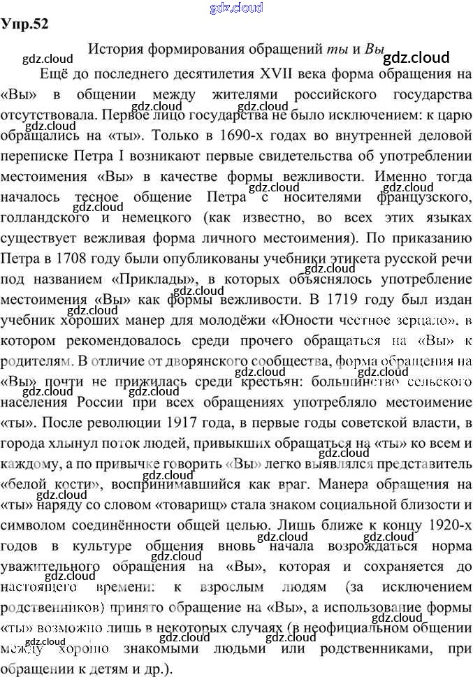 Ответ на задание 52 Учебник Русский язык за 8 (восьмой) класс Александрова, Загоровская, Богданов 2020 ФГОС онлайн и без номера телефона.