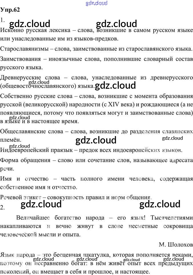 Ответ на задание 62 Учебник Русский язык за 8 (восьмой) класс Александрова, Загоровская, Богданов 2020 ФГОС онлайн и без номера телефона.