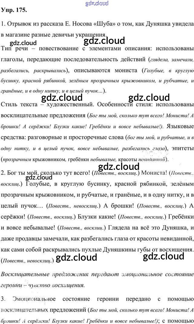 Ответ на задание 175 Учебник Русский язык за 8 (восьмой) класс Быстрова, Кибирева, Воителева Инновационная школа 2019 Часть 1, 2