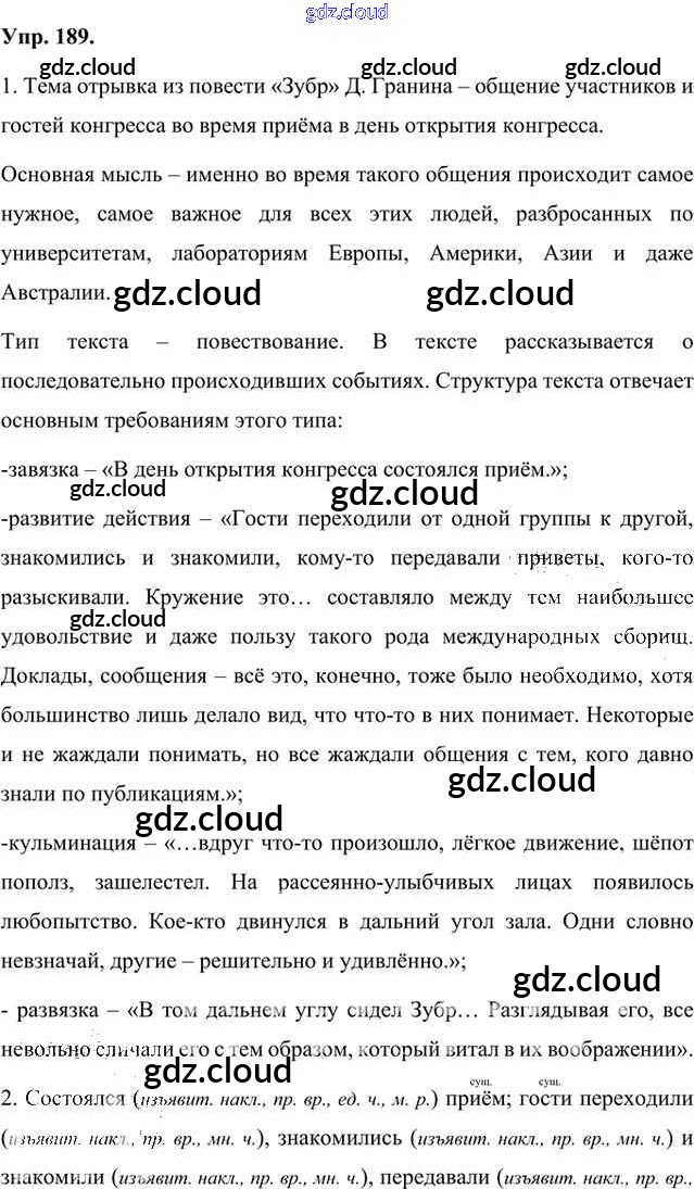 Ответ на задание 189 Учебник Русский язык за 8 (восьмой) класс Быстрова, Кибирева, Воителева Инновационная школа 2019 Часть 1, 2