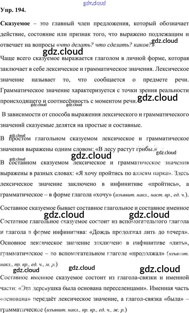 Ответ на задание 194 Учебник Русский язык за 8 (восьмой) класс Быстрова, Кибирева, Воителева Инновационная школа 2019 Часть 1, 2
