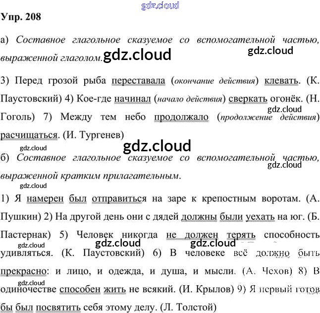 Ответ на задание 208 Учебник Русский язык за 8 (восьмой) класс Быстрова, Кибирева, Воителева Инновационная школа 2019 Часть 1, 2