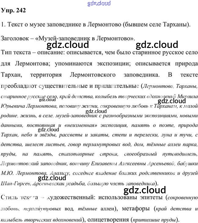 Ответ на задание 242 Учебник Русский язык за 8 (восьмой) класс Быстрова, Кибирева, Воителева Инновационная школа 2019 Часть 1, 2