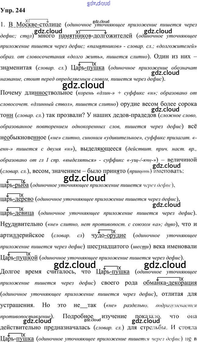 Ответ на задание 244 Учебник Русский язык за 8 (восьмой) класс Быстрова, Кибирева, Воителева Инновационная школа 2019 Часть 1, 2