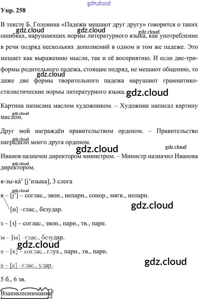 Ответ на задание 258 Учебник Русский язык за 8 (восьмой) класс Быстрова, Кибирева, Воителева Инновационная школа 2019 Часть 1, 2