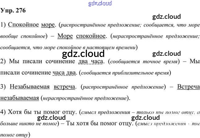 Ответ на задание 276 Учебник Русский язык за 8 (восьмой) класс Быстрова, Кибирева, Воителева Инновационная школа 2019 Часть 1, 2