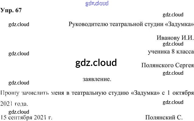 Ответ на задание 67 Учебник Русский язык за 8 (восьмой) класс Быстрова, Кибирева, Воителева Инновационная школа 2019 Часть 1, 2