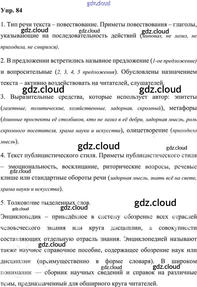 Ответ на задание 84 Учебник Русский язык за 8 (восьмой) класс Быстрова, Кибирева, Воителева Инновационная школа 2019 Часть 1, 2
