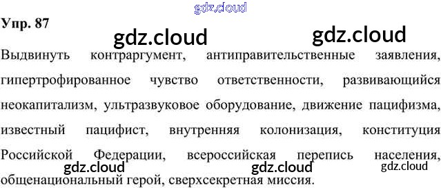 Ответ на задание 87 Учебник Русский язык за 8 (восьмой) класс Быстрова, Кибирева, Воителева Инновационная школа 2019 Часть 1, 2