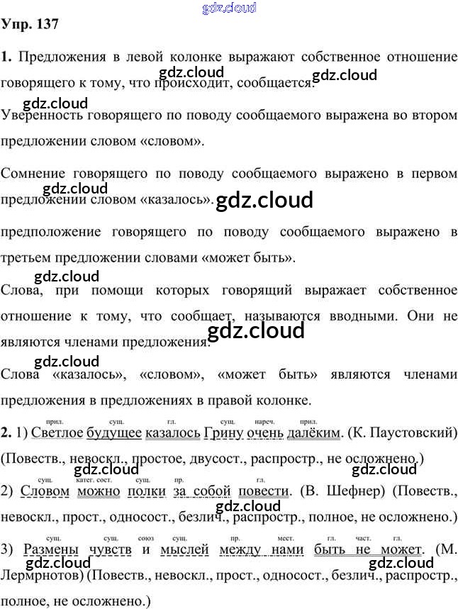 Ответ на задание 137 Учебник Русский язык за 8 (восьмой) класс Быстрова, Кибирева, Воителева Инновационная школа 2019 Часть 1, 2