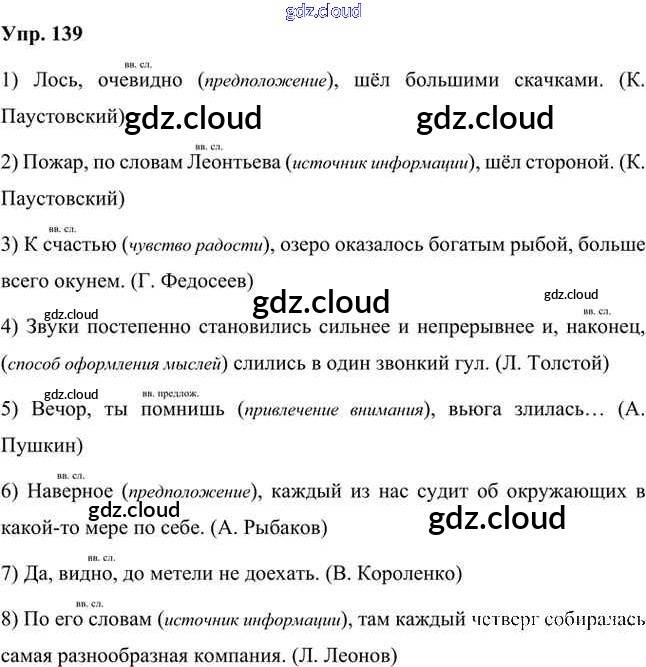 Ответ на задание 139 Учебник Русский язык за 8 (восьмой) класс Быстрова, Кибирева, Воителева Инновационная школа 2019 Часть 1, 2