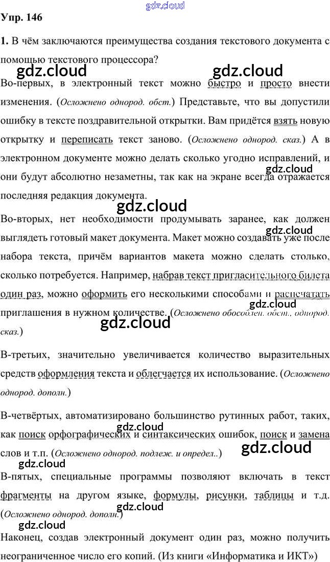 Ответ на задание 146 Учебник Русский язык за 8 (восьмой) класс Быстрова, Кибирева, Воителева Инновационная школа 2019 Часть 1, 2