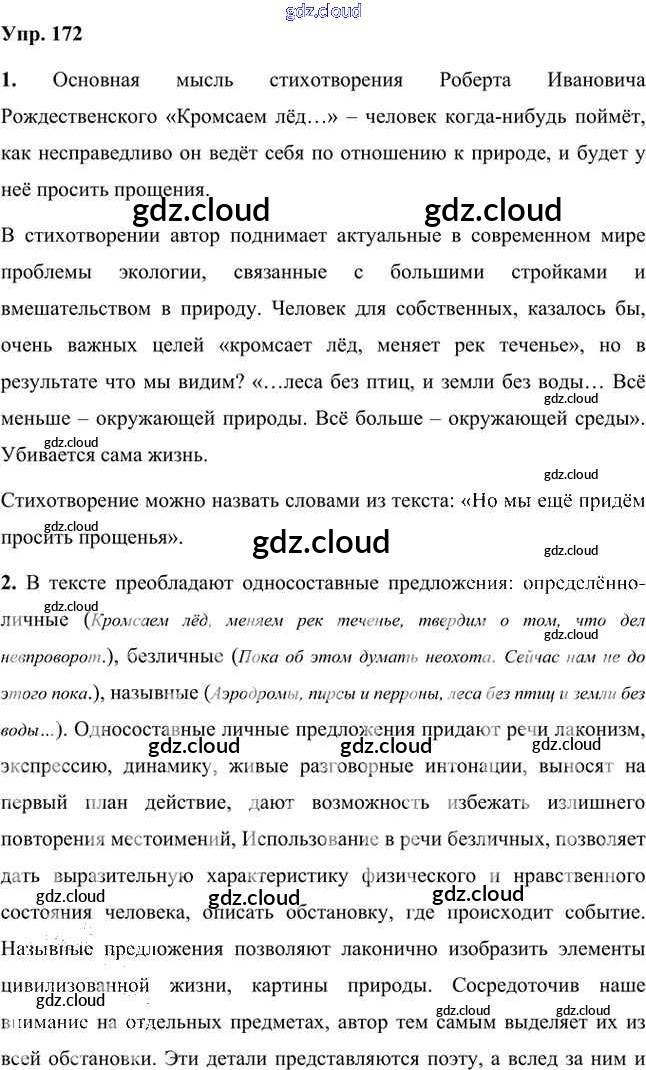 Ответ на задание 172 Учебник Русский язык за 8 (восьмой) класс Быстрова, Кибирева, Воителева Инновационная школа 2019 Часть 1, 2