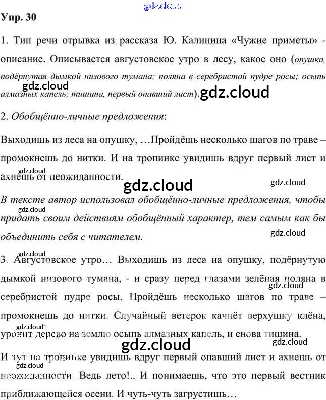 Ответ на задание 30 Учебник Русский язык за 8 (восьмой) класс Быстрова, Кибирева, Воителева Инновационная школа 2019 Часть 1, 2