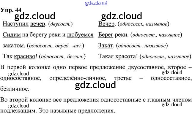 Ответ на задание 44 Учебник Русский язык за 8 (восьмой) класс Быстрова, Кибирева, Воителева Инновационная школа 2019 Часть 1, 2