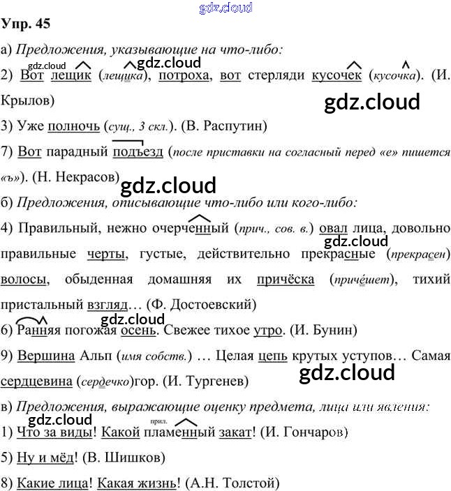 Ответ на задание 45 Учебник Русский язык за 8 (восьмой) класс Быстрова, Кибирева, Воителева Инновационная школа 2019 Часть 1, 2
