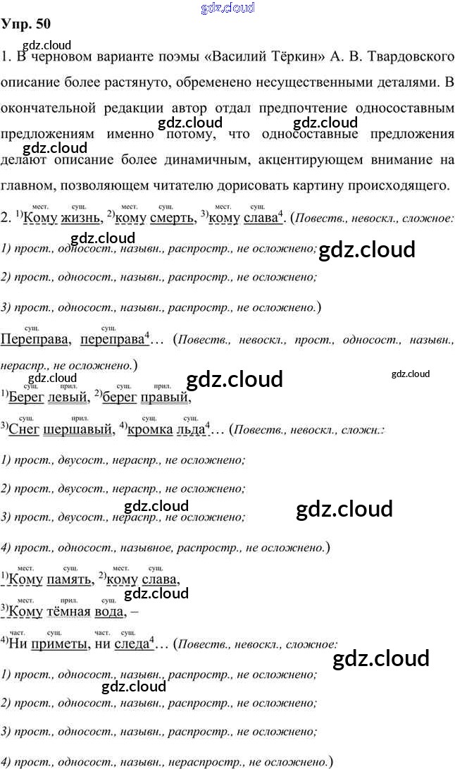 Ответ на задание 50 Учебник Русский язык за 8 (восьмой) класс Быстрова, Кибирева, Воителева Инновационная школа 2019 Часть 1, 2