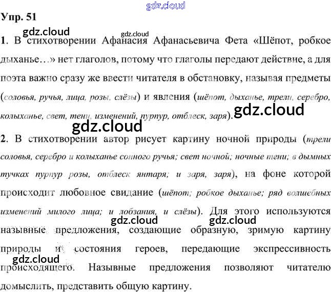 Ответ на задание 51 Учебник Русский язык за 8 (восьмой) класс Быстрова, Кибирева, Воителева Инновационная школа 2019 Часть 1, 2