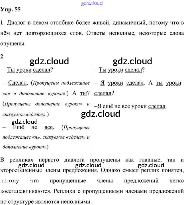 Ответ на задание 55 Учебник Русский язык за 8 (восьмой) класс Быстрова, Кибирева, Воителева Инновационная школа 2019 Часть 1, 2