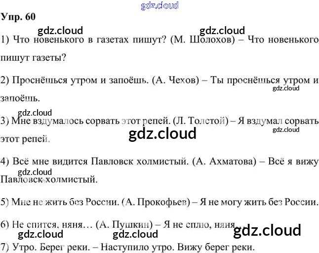 Ответ на задание 60 Учебник Русский язык за 8 (восьмой) класс Быстрова, Кибирева, Воителева Инновационная школа 2019 Часть 1, 2