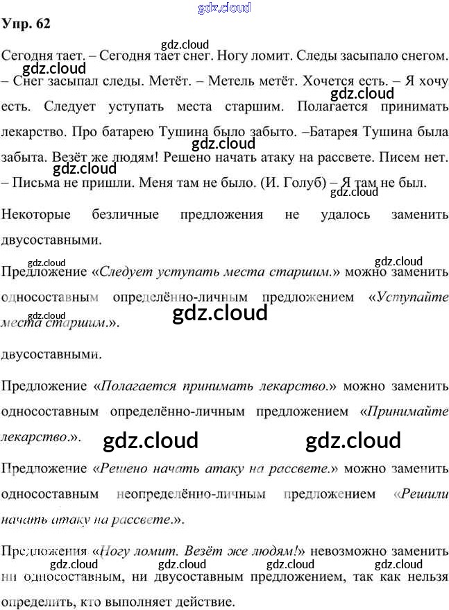 Ответ на задание 62 Учебник Русский язык за 8 (восьмой) класс Быстрова, Кибирева, Воителева Инновационная школа 2019 Часть 1, 2