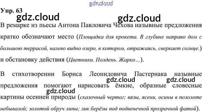 Ответ на задание 63 Учебник Русский язык за 8 (восьмой) класс Быстрова, Кибирева, Воителева Инновационная школа 2019 Часть 1, 2