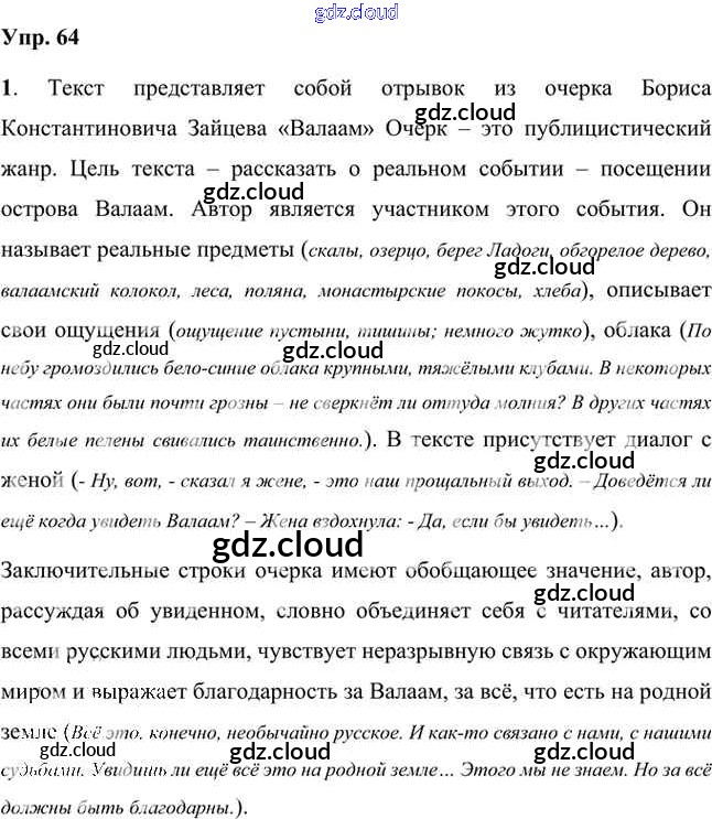 Ответ на задание 64 Учебник Русский язык за 8 (восьмой) класс Быстрова, Кибирева, Воителева Инновационная школа 2019 Часть 1, 2