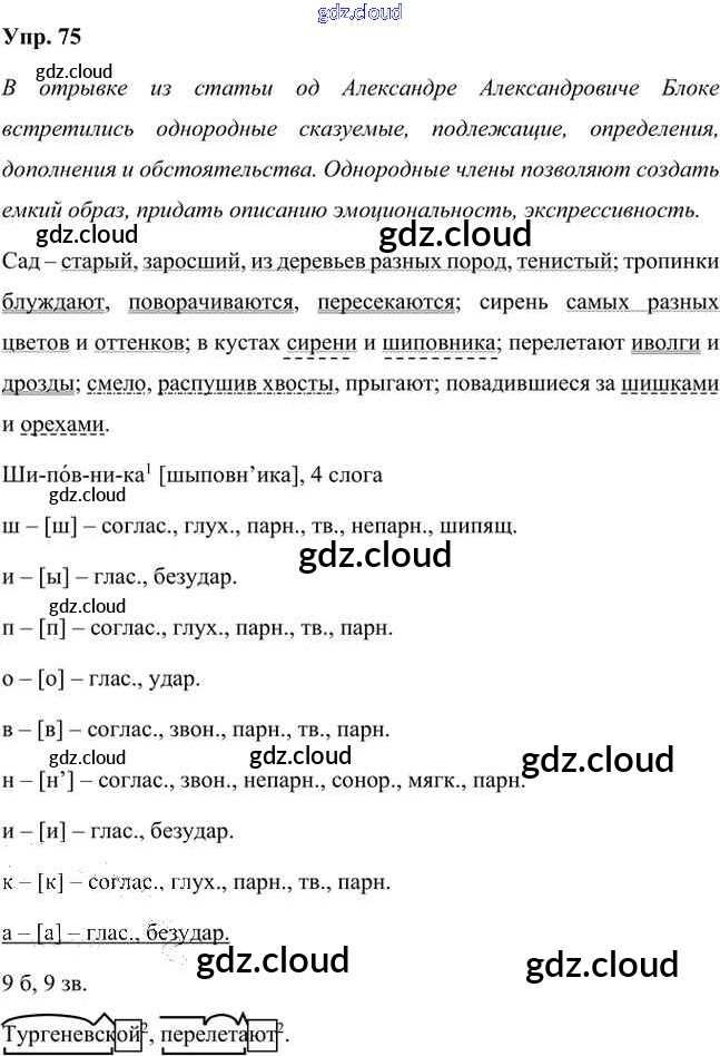Ответ на задание 75 Учебник Русский язык за 8 (восьмой) класс Быстрова, Кибирева, Воителева Инновационная школа 2019 Часть 1, 2