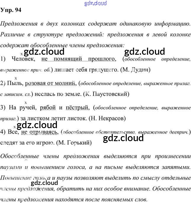 Ответ на задание 94 Учебник Русский язык за 8 (восьмой) класс Быстрова, Кибирева, Воителева Инновационная школа 2019 Часть 1, 2
