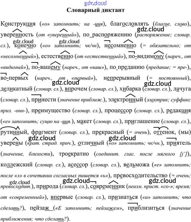 Словарный диктант Часть 2 (ответы) по Русскому языку 8 класс Учебник Быстрова Инновационная школа Часть 1, 2 Русское слово